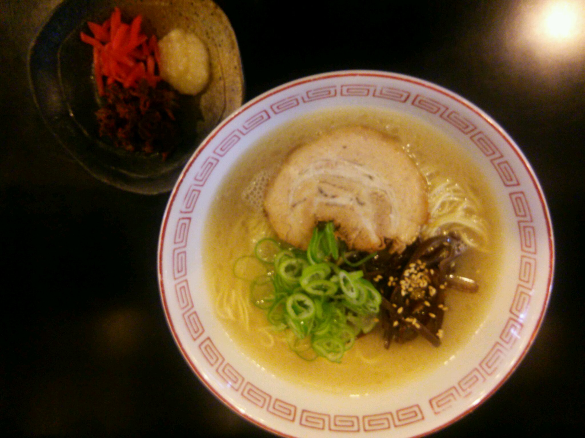 2014,年の瀬ラーメンですが、多くの事を学び気付かせてもらった博多に感謝の気持ちを込め、又、向こうで学んだ事を皆様に見ていただくために「左近早搾り博多の屋台風」ラーメンにしました。