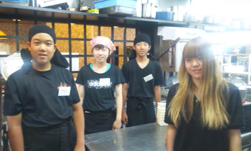 三人共、朝から頑張ってくれてます!飲食業に興味を持って貰えれば嬉しいです。今日も暑いけど最後まで張りきって参りましよう♪